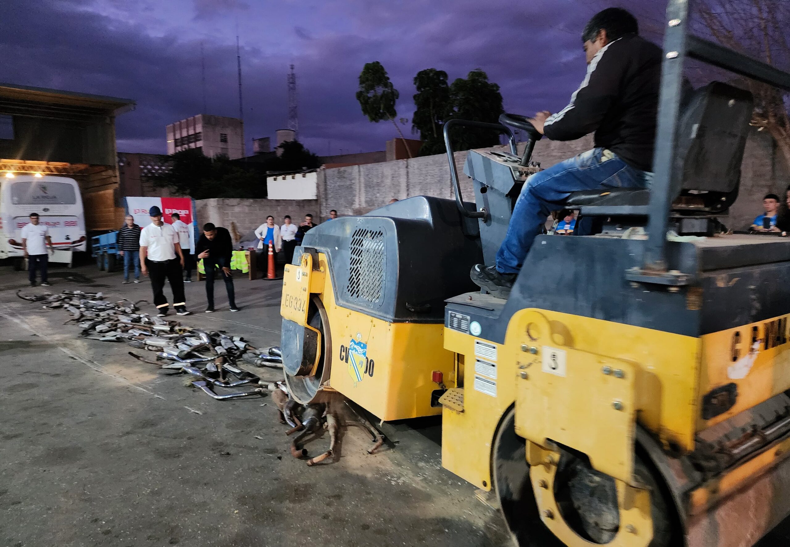 El intendente Armando Molina supervisó la primera destrucción pública de 150 caños de escape ruidosos que fueron decomisados en distintos operativos de tránsito.