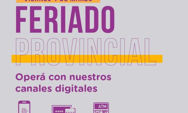 Leer más: ESTE VIERNES NO HABRÁ ATENCIÓN BANCARIA POR EL FERIADOTanto el Banco Rioja como los bancos nacionales adherirán al feriado provincial con lo cual no prestarán atención al público. No obstante, se podrá operar a través de los canales digitales (homebanking, APP y cajeros automáticos).