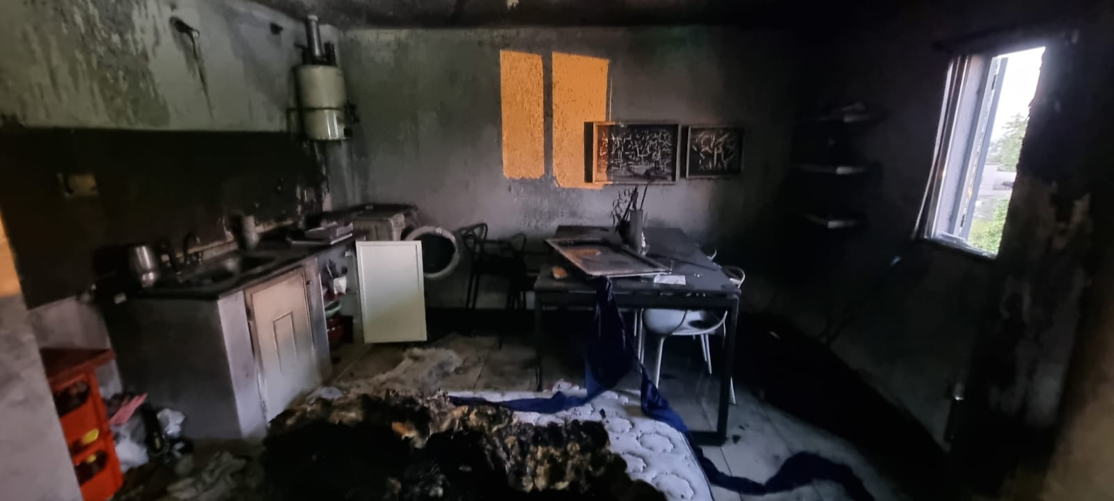 El fuego se habría desatado tras quemarse un colchón de dos plazas, ubicado en la cocina/comedor, donde el incendio provocó daños estructurales.
