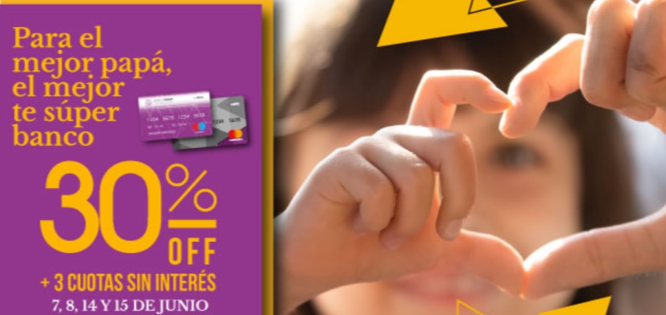 Leer más: «TE SÚPER BANCO: DÍA DEL PADRE» ESTARÁ VIGENTE HASTA ESTE JUEVESHasta el jueves 15 de junio inclusive, las personas clientes de Banco Rioja podrán acceder a un descuento del 30%, 3 cuotas sin interés y un tope de devolución de $3500 pesos por tarjeta y por cuenta en las compras realizadas con tarjetas de débito y crédito MasterCard BR.