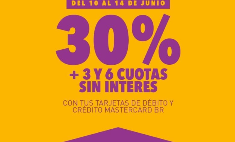 Las/os clientes que cobran su sueldo en Banco Rioja podrán acceder a un 30% de ahorro pagando sus compras con la tarjeta de débito de la entidad. En este caso, el tope de reintegro es de $4000. Para los/as clientes que abonen sus regalos con la tarjeta de crédito Mastercard BR, el descuento es de 30%, con un financiamiento de 3 y 6 cuotas sin interés y con un tope de devolución de $8.000.
