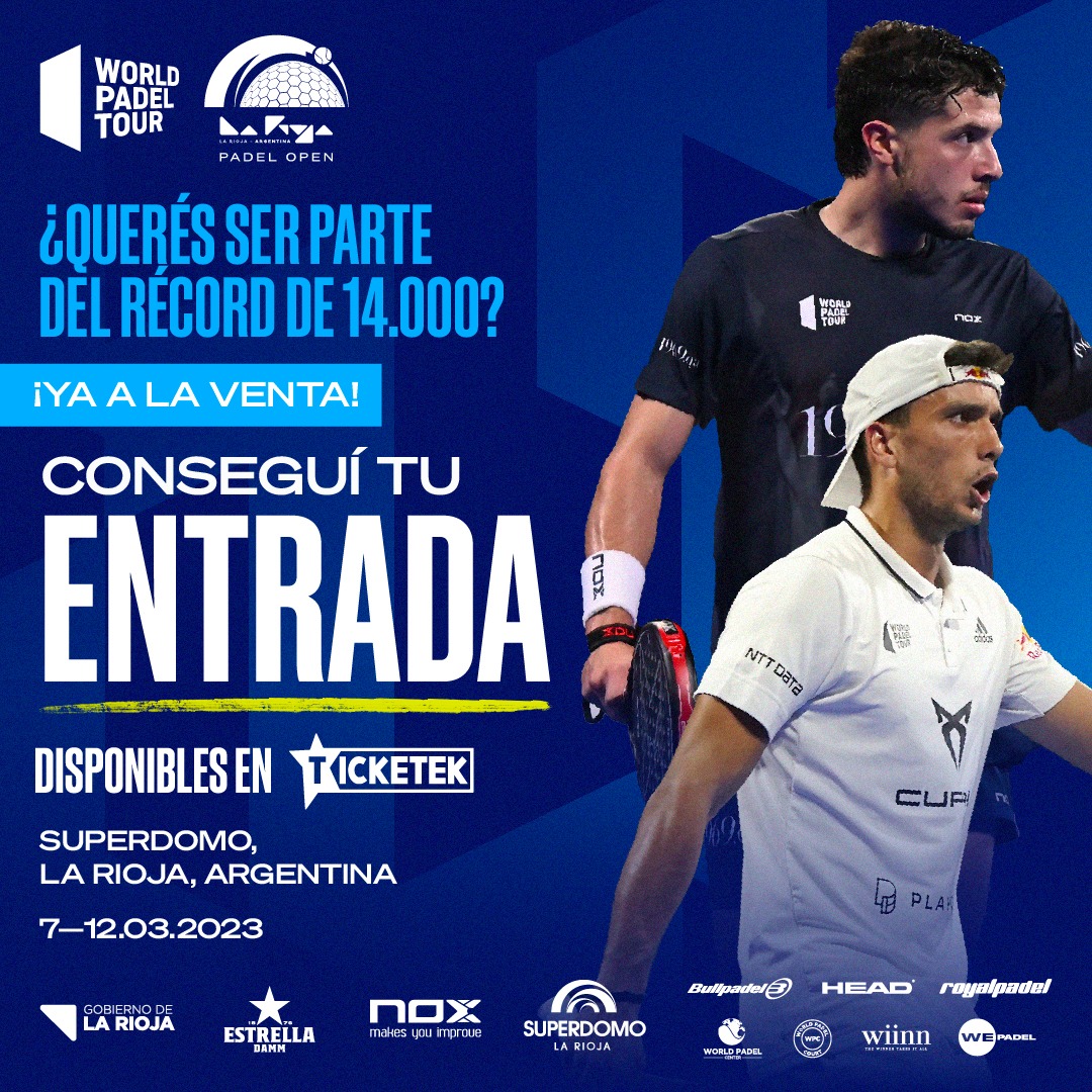 Desde el Gobierno de la Provincia informan que ya están a la venta las entradas para el evento deportivo La Rioja Padel Open en el marco del World Padel Tour, que tendrá lugar del 7 al 12 de marzo en el Superdomo. Los pases podrán adquirirse por Ticketek.